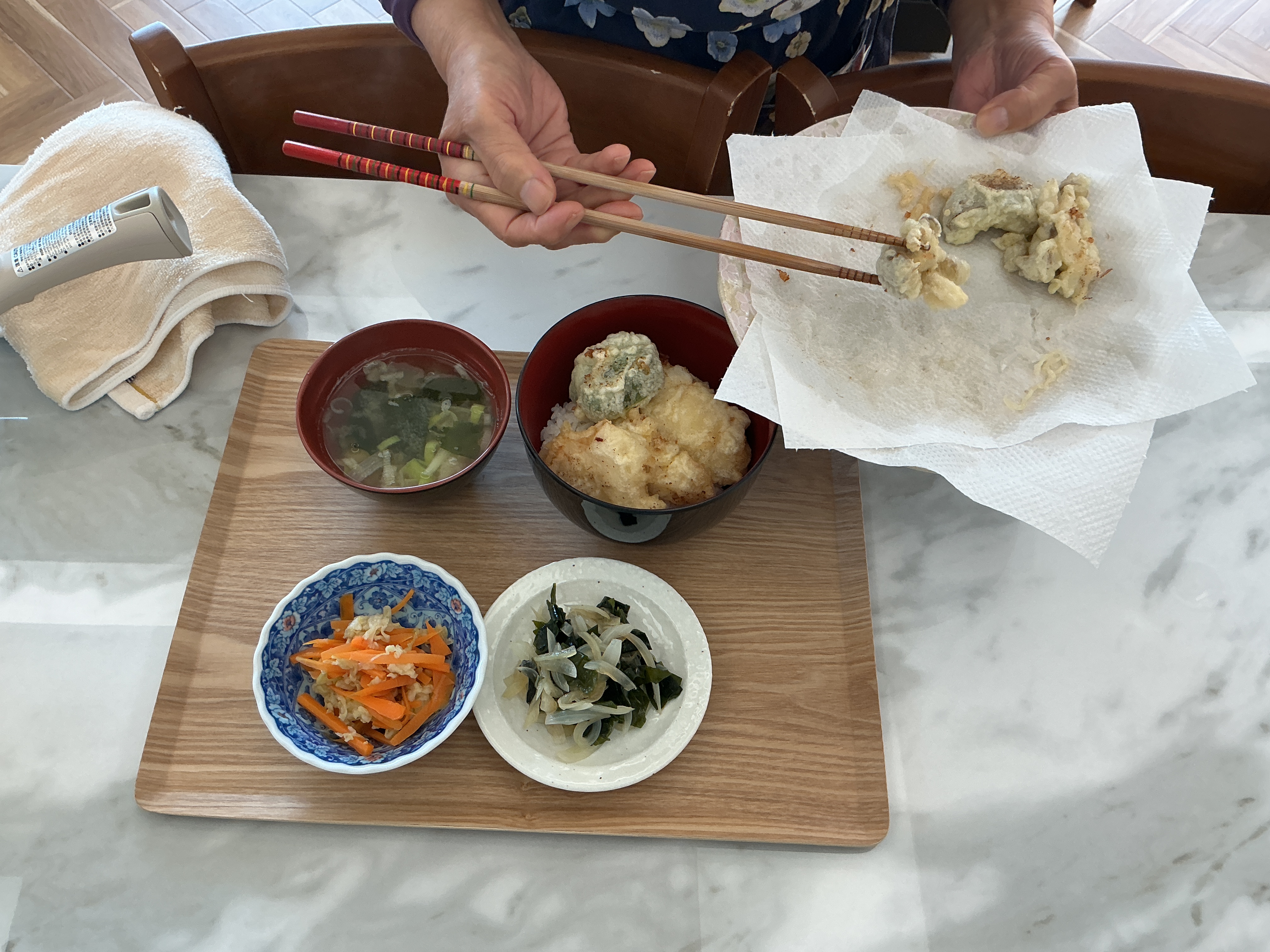 出来上がったとり天丼は「しっとりして美味しい!」と大好評でした![]()