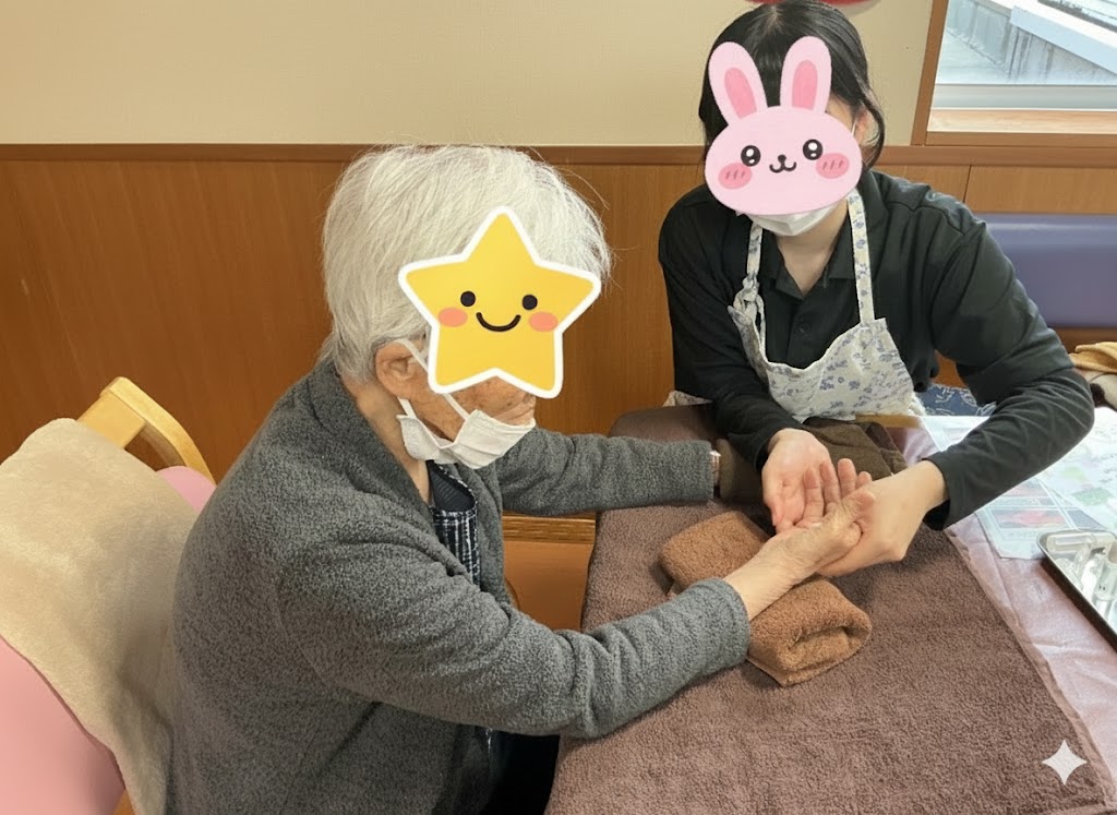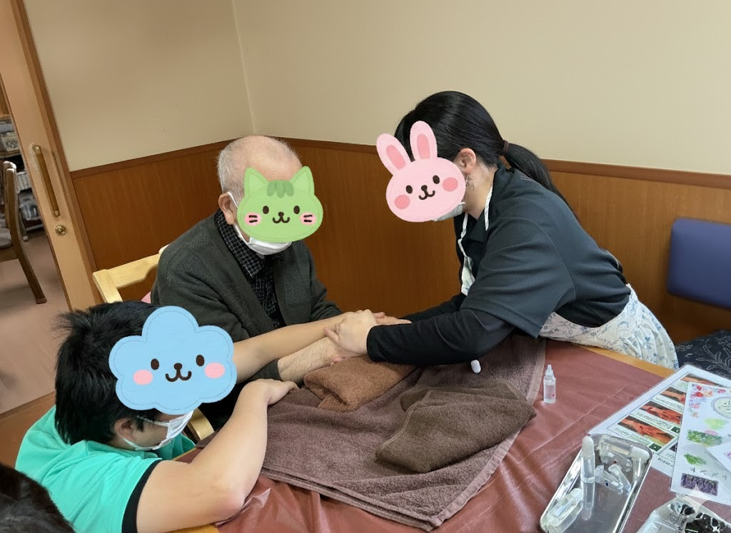 「いい香りで気持ちいいね」「また来てくれると嬉しいね」と、入居者様の笑顔も見られ、穏やかで心和む時間となりました。