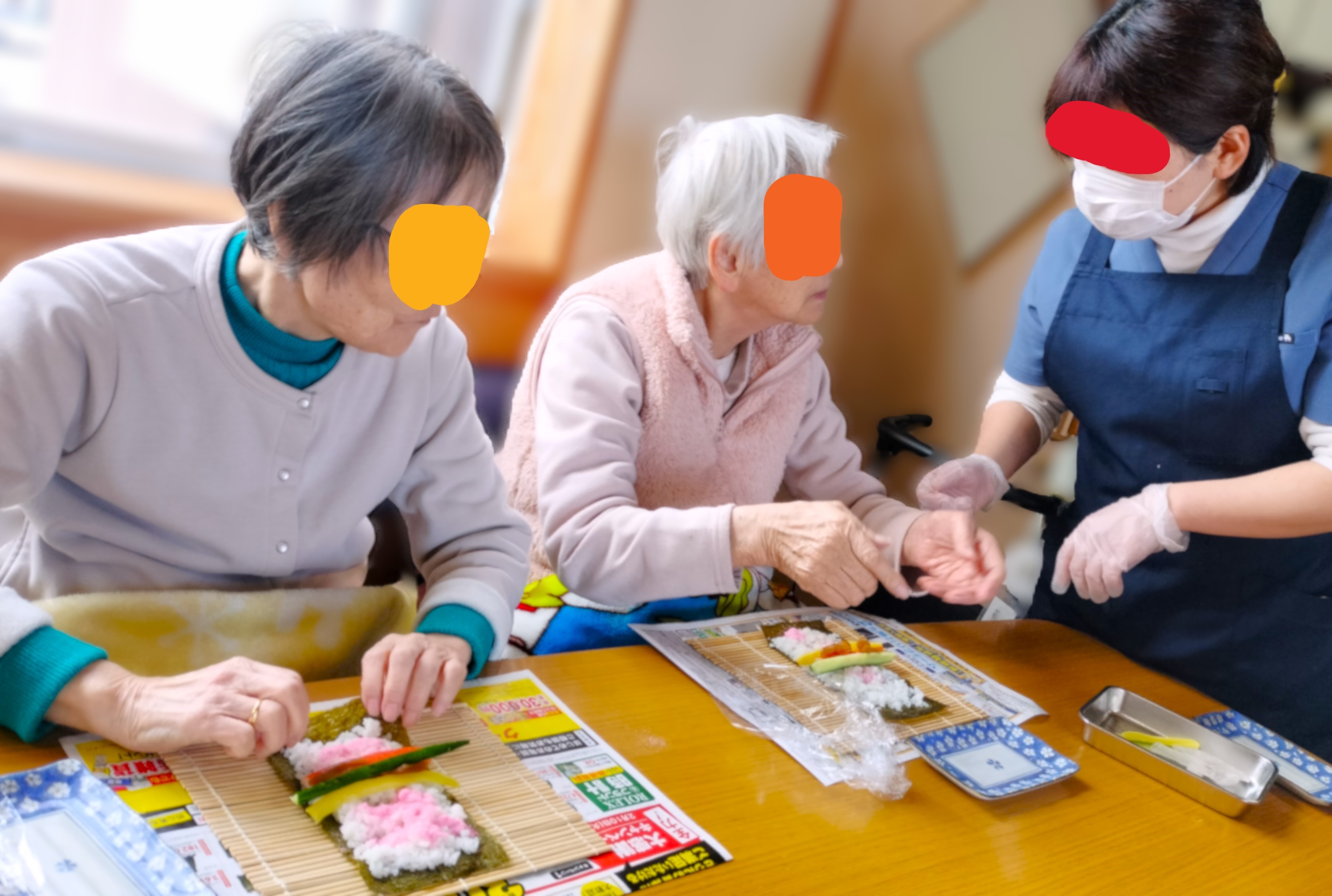 数名の女性入居者様が、手際よく上手に恵方巻を作ってくださいました。